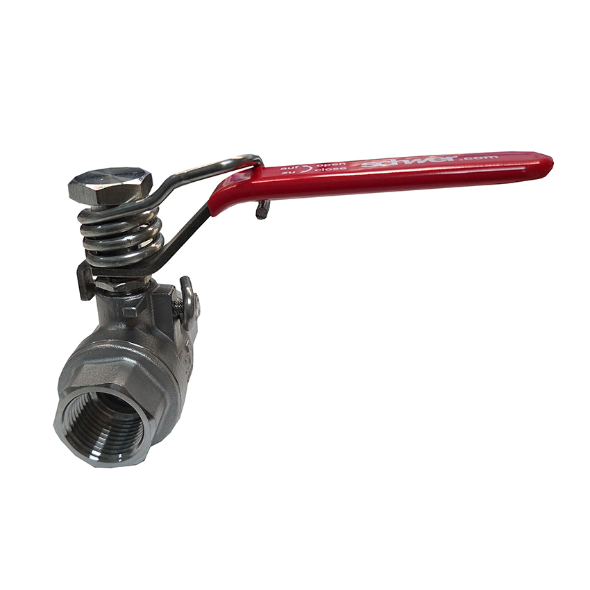 schwer Kugelhahn, Edelstahl, mit Federrückstellung, G1/2" Innengewinde, zweiteilig, PN64 , max. 180°C