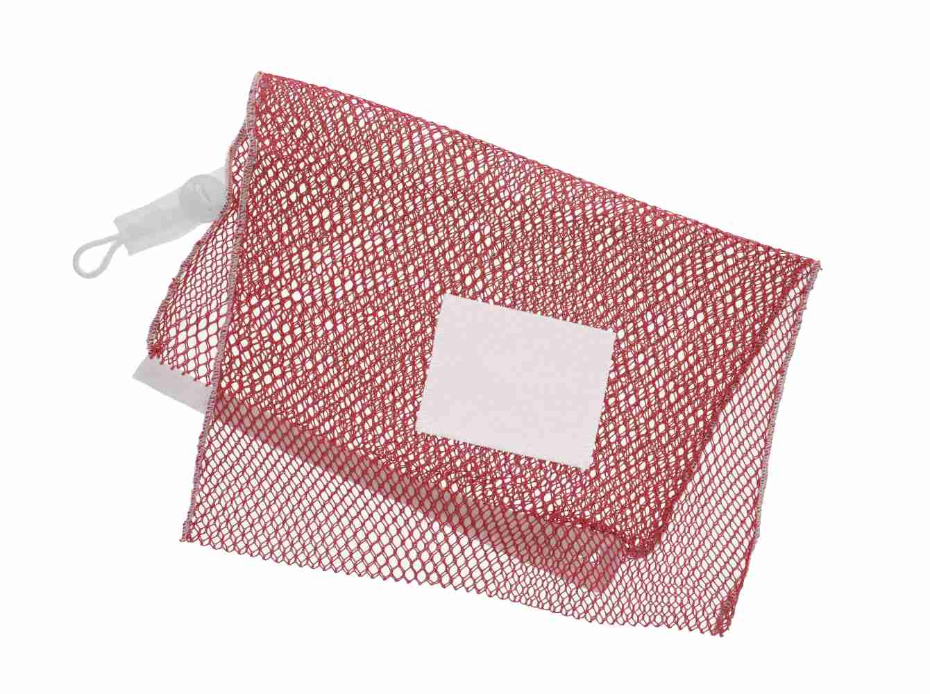 WASHINGNET 70 x 110cm RED, with closure+knob, reinforced edge, patch 10x13 cm