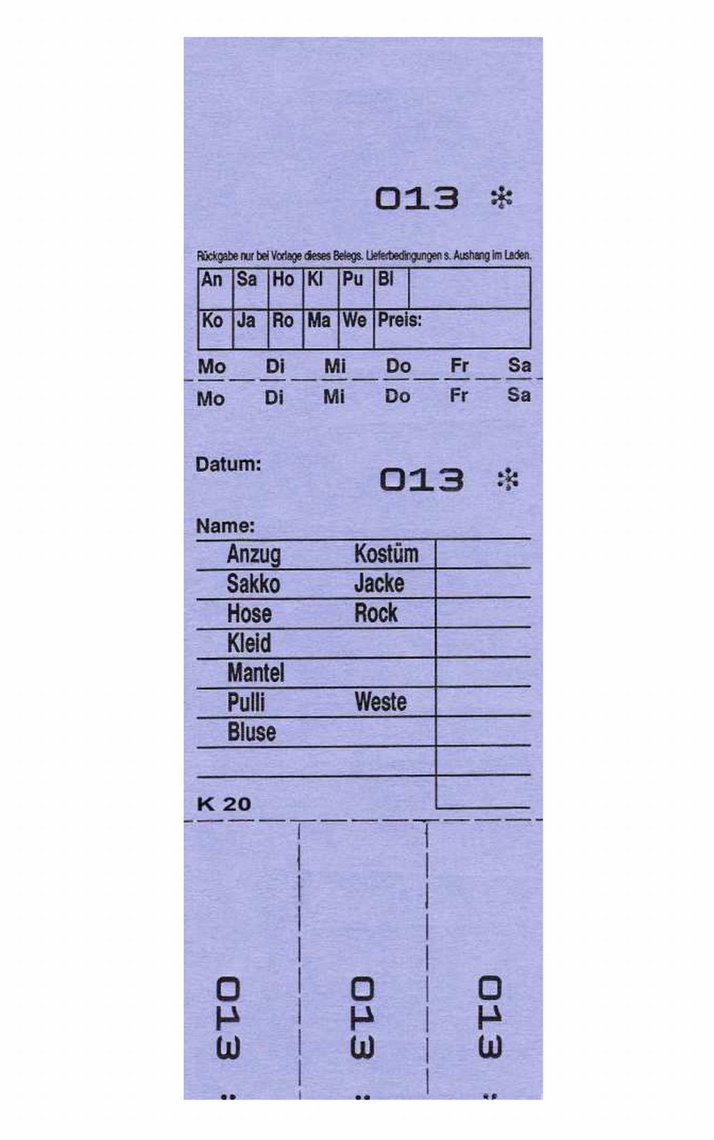 TICKETS DE DEPOT KOMBI 3, BLEU (UNITE = No. 1 - 1000)
