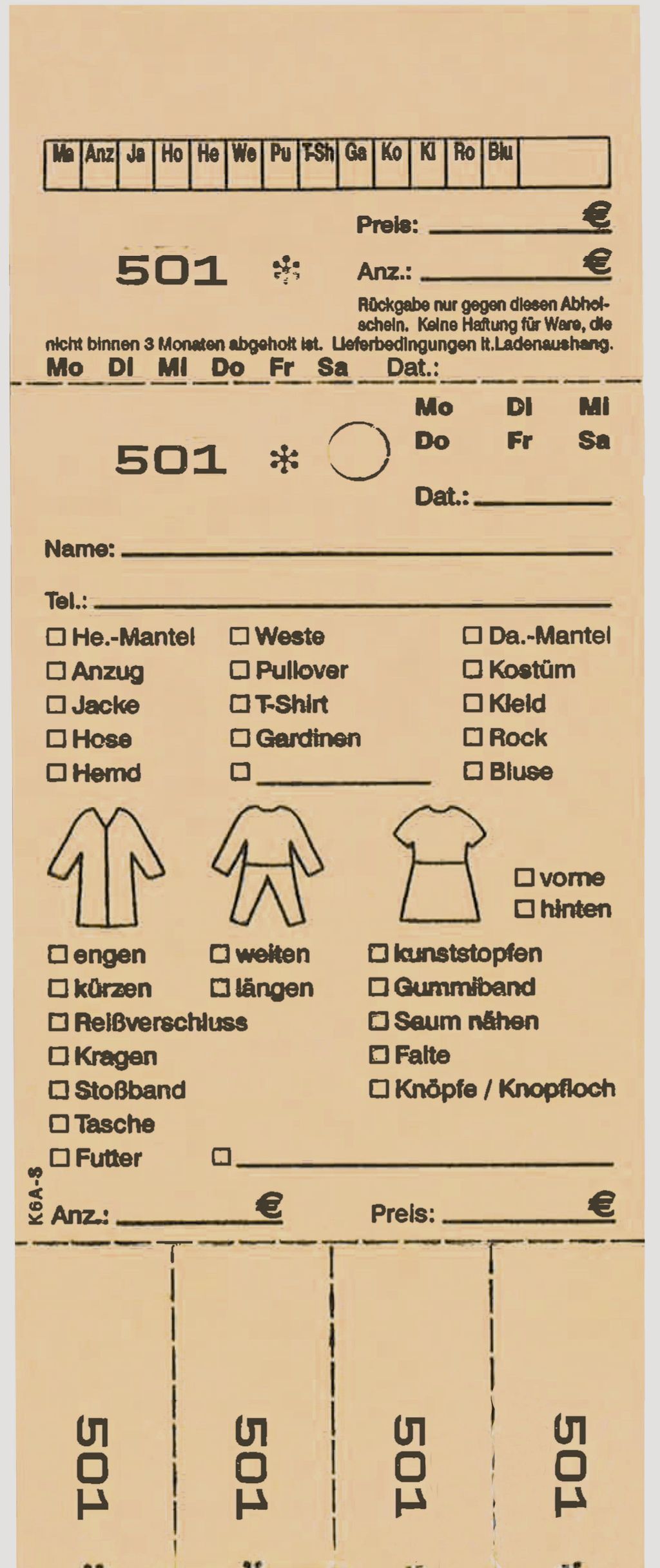 TICKETS DE DEPOT KOMBI 6A,BLEU (UNITE = No. 1 - 1000)